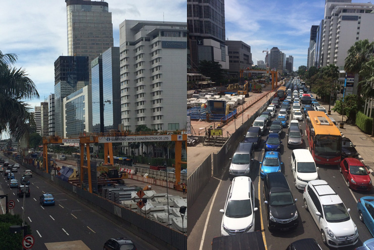 車が溢れかえる横で、その渋滞改善に向け、ジャカルタ初の地下鉄建設が進んでいます。(ちなみに施工は日本の会社。そして溢れる車のほとんどは日本の車。)